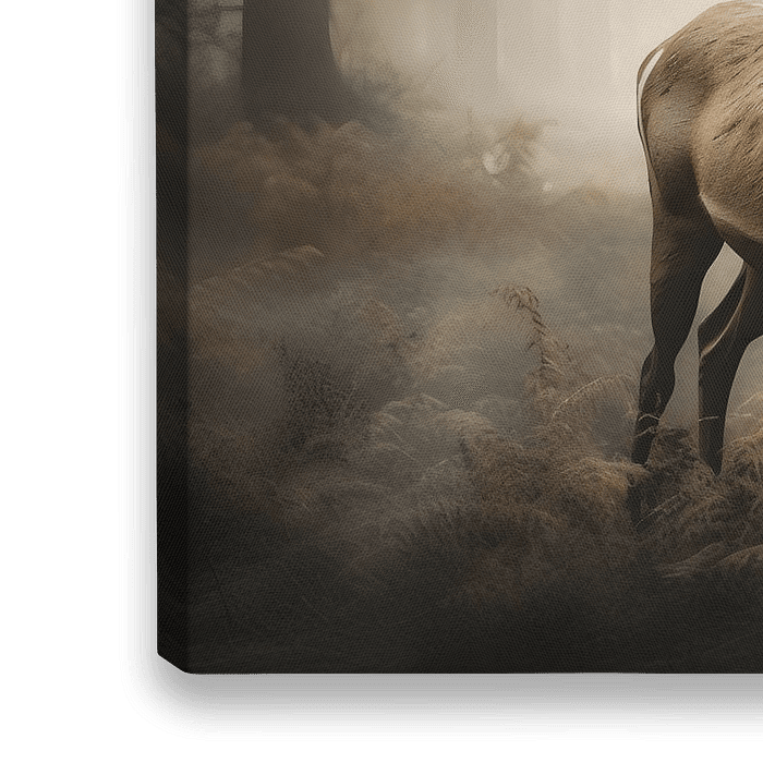 Koop dit landschapskunstwerk Majestueus hert in een Mistig Bos: Geïnspireerd op Britse Landschappen en Barokke Dieren van Karina Brouwer op canvas, aluminium dibond, (ingelijste) fotoprint, behang en ArtFrame, op maat geprint in Fine-Art kwaliteit.