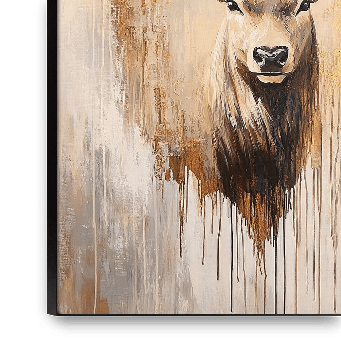 Dit prachtige schilderij toont een majestueus hert in een abstracte stijl met verfijnde gouden accenten. De ingetogen kleuren van beige en bruin brengen rust in het ontwerp, terwijl de gouden tinten het beeld kracht en elegantie geven. Het schilderij heeft een modern en minimalistisch gevoel, waarbij de subtiele details het onderwerp…