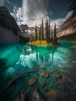 Majestueus meer met helder water, prachtige bergen rondom en bomen in het midden