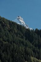 Prachtige Aiguille du Midi op een zonnige dag, gezien vanaf het Chamonix Mont-Blanc resort. Kleurenfoto genomen met mijn Fujifilm apparatuur en de Classic chrome film keuze. U kunt al mijn collecties zien op www.luciboreali.com