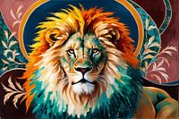 Dit ontwerp toont een majestueuze leeuw met een levendige en artistieke uitstraling. De rijke kleuren en het verfijnde gebruik van lijnen geven de leeuw een dynamische, bijna droomachtige sfeer. De combinatie van felle tinten zoals geel, oranje, blauw en groen doet denken aan een explosie van energie en kracht. De achtergrond, met gedetailleerde patronen en florale elementen, versterkt de elegantie en kracht van het dier, waardoor het een eyecatcher is voor elke ruimte. Het ontwerp combineert moderne en klassieke elementen en is een perfecte toevoeging voor een kantoor of woonkamer. Het brengt zowel een gevoel van rust als energie in de ruimte, ideaal voor liefhebbers van dieren en kunst.