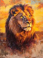 Dit prachtige schilderij vangt de kracht en pracht van een majestueuze leeuw, badend in de warme tinten van een vurige zonsondergang. Met expressieve penseelstreken en levendige kleuren straalt het ontwerp een gevoel van energie en kracht uit, terwijl het toch een serene schoonheid behoudt. Het is perfect om een vleugje wilde natuur en elegantie toe te voegen aan elke ruimte. Dit schilderij trekt gegarandeerd de aandacht en vormt een indrukwekkend middelpunt in een woonkamer of kantoor, waar het een sfeer van kracht en rust oproept. Ideaal voor liefhebbers van dierenkunst en natuurpracht.