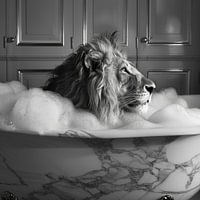 Dit indrukwekkende badkamerkunstwerk toont een majestueuze leeuw die rustig in bad ligt en een indrukwekkende sfeer toevoegt aan je toilet. De zwart-wit fotografie legt de sublieme aanwezigheid van de leeuw vast en benadrukt de details van de scène, waardoor het een fascinerende en unieke toevoeging aan je badkamerdecor is. Deze muurschildering is perfect om je toilet of badkamer op te fleuren en herinnert je eraan dat zelfs de koningen van de savanne kunnen genieten van momenten van rust en ontspanning. Deze moderne serie badkamer muurschilderingen biedt stijlvolle decoratie die niet alleen ontzag inboezemt, maar ook een krachtig en majestueus tintje aan je badkamer geeft. Breng een sfeer van kracht en grandeur in je toilet met dit imposante kunstwerk en laat je inspireren door zijn pracht en praal.