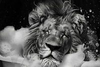 Dit indrukwekkende badkamerkunstwerk toont een majestueuze leeuw die rustig in bad ligt en een indrukwekkende sfeer toevoegt aan je toilet. De zwart-wit fotografie legt de sublieme aanwezigheid van de leeuw vast en benadrukt de details van de scène, waardoor het een fascinerende en unieke toevoeging aan je badkamerdecor is. Deze muurschildering is perfect om je toilet of badkamer op te fleuren en herinnert je eraan dat zelfs de koningen van de savanne kunnen genieten van momenten van rust en ontspanning. Deze moderne serie badkamer muurschilderingen biedt stijlvolle decoratie die niet alleen ontzag inboezemt, maar ook een krachtig en majestueus tintje aan je badkamer geeft. Breng een sfeer van kracht en grandeur in je toilet met dit imposante kunstwerk en laat je inspireren door zijn pracht en praal.