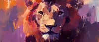 Een majestueuze leeuw, gevangen in levendige kleuren, straalt kracht en gratie uit. De dynamische penseelstreken geven het dier een bijna overweldigende aanwezigheid die elke muur doet oplichten. Ideaal voor de woonkamer, waar zijn krachtige karakter gesprekken kan stimuleren en een sfeer van passie en inspiratie kan creëren.