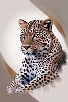 Dit indrukwekkende ontwerp toont een majestueuze luipaard in een hyperrealistische stijl. De gedetailleerde weergave van het dier geeft een bijna tastbare uitstraling. De zachte kleurcombinatie van bruin, zwart en wit creëert een kalmerende sfeer die perfect zou passen in een moderne woonkamer of slaapkamer. De subtiele, maar aanwezige schaduwcontrasten versterken het natuurlijke gevoel en maken dit ontwerp een perfecte aanvulling voor liefhebbers van dierenkunst en minimalistische interieurs. Door de serene en tegelijkertijd krachtige uitstraling trekt het ontwerp de aandacht zonder de ruimte te overheersen. Het is een prachtig kunstwerk dat perfect past bij een rustige, stijlvolle inrichting.