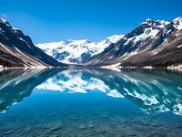 Koop dit landschapskunstwerk Majestueuze reflectie - Alpine idylle in blauw van ButterflyPix op canvas, aluminium dibond, (ingelijste) fotoprint, behang en ArtFrame, op maat geprint in Fine-Art kwaliteit.