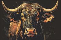 Dit indrukwekkende kunstwerk vangt de majestueuze kracht en elegantie van een stier, weergegeven in rijke, aardse tinten. De gedetailleerde stijl doet denken aan de klassieke Art Deco en Art Nouveau, waarbij de complexe lijnen en het dynamische kleurgebruik een gevoel van beweging en vitaliteit uitstralen. Perfect voor in een kantoor of woonkamer, brengt dit ontwerp een unieke mix van klassieke elegantie en natuurlijke kracht in elke ruimte. Laat je inspireren door de sterke uitstraling en de artistieke finesse van deze stier, die zowel een eerbetoon is aan de natuur als aan tijdloze kunststijlen.