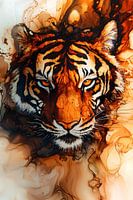 Dit ontwerp vangt de kracht en elegantie van een tijger in een unieke aquarelstijl. De diepe oranje en bruine tinten vermengen zich prachtig met de vloeiende lijnen van de achtergrond, waardoor een dynamisch en intrigerend geheel ontstaat. Perfect voor liefhebbers van dieren en moderne kunst, dit kunstwerk brengt een energieke en toch serene sfeer in elke ruimte. Ideaal als statement piece voor woonkamers of kantoren, het ontwerp benadrukt de schoonheid van de natuur en voegt een vleugje verfijning toe aan elke omgeving.