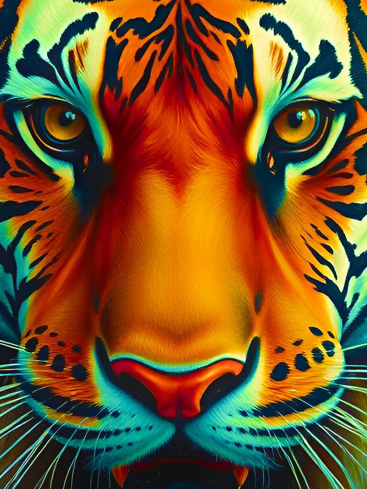 Ervaar de rauwe schoonheid van een tijger. Dit meesterwerk heeft gedurfde penseelstreken, een expressieve impasto-textuur en spookachtige ogen die de majestueuze aanwezigheid van het wild tot leven brengen.