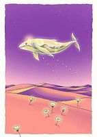 Over ‘Majestueuze vliegende walvis boven de woestijnlucht - surrealistische droomlandschap kunst’ van MIROKKU