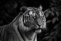 Deze zwart-witfoto vangt de intense kracht en schoonheid van een tijger in zijn natuurlijke omgeving. De details van de tijger komen prachtig tot hun recht, met scherpe lijnen die de focus op zijn sierlijke vorm en markante strepen vestigen. De achtergrond is vervaagd, waardoor de aandacht volledig naar het majestueuze dier gaat. Perfect voor iedereen die houdt van natuur, wilde dieren en fotografie met een tijdloze, elegante uitstraling. Dit ontwerp past goed in moderne of klassieke interieurs en voegt een vleugje rust en kracht toe aan elke ruimte. Het ingetogen kleurenschema maakt het veelzijdig en stijlvol, ideaal voor kantoren of slaapkamers waar een kalmerende en krachtige sfeer gewenst is.