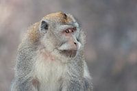 Deze aap leek nogal onder de indruk van het hele schouwspel om hem heen. Een van de weinige apen die niet gefocust was op het buit maken van voedsel. Foto gemaakt in Bali op de de Mount Batur.