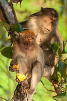 Langstaart makaken in een boom nabij het strand in Ao Nang