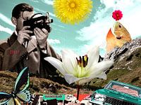 Surrealistische collage van verschillende (retro) afbeeldingen.