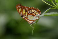 De malachietvlinder (Siproeta stelenes). Een prachtig gekleurde en getekende vlinder. Deze lijkt klaar te staan om in het diepe te springen.