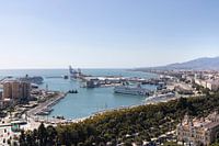 Koop de foto Malaga Spanje haven overzicht van Marianne van der Zee op canvas, aluminium dibond, (ingelijste) fotoprint, behang en ArtFrame, op maat geprint in Fine-Art kwaliteit.