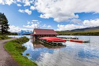 Boothuis bij Maligne Lake in Jasper National Park, Alberta, Canada