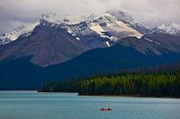 Maligne Lake is een meer in het Jasper National Park, Alberta, Canada. Het meer staat bekend om de kleur van het azuurblauwe water, de omringende bergtoppen, de drie gletsjers die zichtbaar zijn vanaf het meer