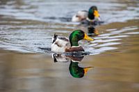 Mallard (Anas platyrhynchos) op een vijver in het natuurgebied Mönchbruch bij Frankfurt, Duitsland.