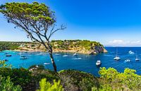Gezicht op eilandlandschap op Mallorca, mooie baai met boten van Portals Vells, Middellandse Zee Spanje