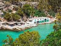 Koop dit landschapskunstwerk Mallorca droomstrand met boten van Mustafa Kurnaz op canvas, aluminium dibond, (ingelijste) fotoprint, behang en ArtFrame, op maat geprint in Fine-Art kwaliteit.