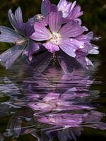 Kruiden, kruidentuin, siertuin, tuinen, mallows, gezondheid, plantkunde, reflectie, fonkelende druppels, regendruppels, ochtenddauw, waterspiegel, bloemen, paars, blauw, spiritueel, motivatie, nieuw landelijk