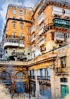 Koop dit digital art kunstwerk Malta Valetta stad aquarel schilderij #malta van JBJart Justyna Jaszke als reproductie geprint op canvas, aluminium dibond, (ingelijste) fotoprint, behang en ArtFrame. Voor jou op maat geprint in Fine-Art kwaliteit.