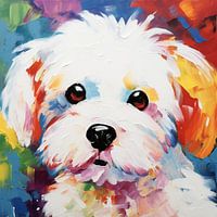 Expressief close-up portret van een lief Maltezer Leeuwtje.