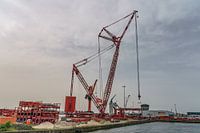 De PTC 210-DS ringkraan van Mammoet, één van de grootste kranen ter wereld, is eind 2023 opgebouwd op de Heavy Lift Terminal van Mammoet in Schiedam. Deze gigantische kraan werd opgebouwd voor aan aantal heavy-lift projecten waarbij kraanvervangingen werden uitgevoerd op twee jack-up vessels voor offshore windinstallaties.