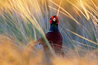 Man Fazant (Phasianus colchicus) in het helm in duingebied op Waddeneiland Texel.