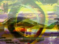 Dit expressionistische acrylabstract verbeeldt het fantasieland van kinder's verhaaltjes voor het slapengaan.