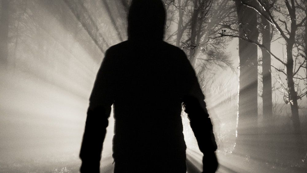Hier sta ik in de mist. Gemaakt met behulp van een zaklamp en dit is het resultaat.