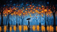De schitterende kleuren brengen een gevoel van rust en verwondering, terwijl het surrealistische ontwerp de kijker uitnodigt om verder te kijken en de verborgen betekenissen te ontdekken. Het park, met zijn ongewone elementen en uitstraling, creëert een dromerige en fantasierijke wereld waarin de grenzen van de werkelijkheid vervagen. Het gebruik van levendige tinten en gedetailleerde structuren maakt dit kunstwerk 100% uniek en origineel.