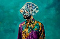 Man met kristallen hoofd voor gekleurde achtergrond van Poster Art Shop