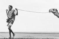 Man met een kameel onderweg naar zoutmeer Assale in het noorden van Ethiopië. Daar gaat de man met zijn kamelen zoutblokken halen die hij naar het bergdorp Berhale gaat brengen. Dat is twee dagen lopen. Heen en weer.