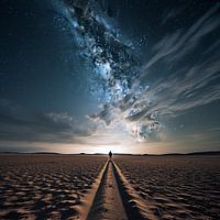 Man onder de melkweg schilderij met een prachtige en unieke stijl. Met prachtige kleurtinten en een uniek ontwerp maakt dit tot een stijlvolle fotoprint die prachtig staat in elke ruimte. 100% uniek en origineel!