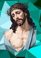 "Man of Sorrows" (stijl Lowpoly), geïnspireerd op een schilderij van Guido Reni (ca. 1630 - 1700) Hoofd van Christus als de Man van Smarten. Het hoofd van Christus met de doornenkroon, omhoog kijkend. Waarschijnlijk een kopie van het origineel in Detroit.