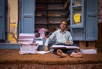 Ik ontmoette deze vriendelijke man terwijl hij kopietjes sorteerde voor de deur van zijn copyshop in Varanasi, India. Varanasi is werkelijk een bijzondere stad, je kunt je dagenlang verwonderen in de wirwar van straatjes leidend naar de Ganges.