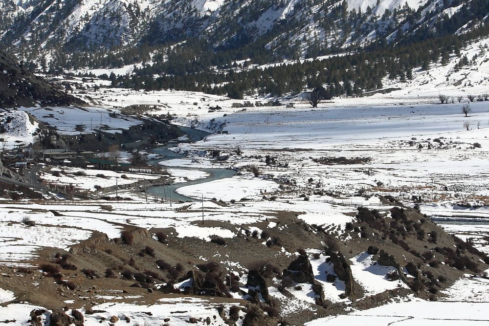Op deze foto: Uitzicht op de Marshyangdi-rivier in de Manang-vallei vanaf de omringende kliffen.