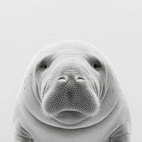 Deze prachtige zwart-witfoto van een zeekoe toont de zachte en vredige aard van het dier in verbluffend detail. De zachte lijnen en kalme uitstraling van de zeekoe worden benadrukt door de minimalistische achtergrond, waardoor dit kunstwerk zowel rustgevend als visueel aantrekkelijk is. Perfect voor liefhebbers van de onderwaterwereld…