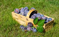 Mand met pruimen in een weide