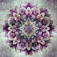 "Blossom of Harmony" is een mandala ontworpen in zachte tinten paars, violet en crème. Het symmetrische bloemenpatroon straalt een rustgevende elegantie uit en nodigt uit tot een moment van rust en meditatie. Dit kunstwerk is perfect voor elke kamer die een sfeer van sereniteit en schoonheid moet uitstralen.