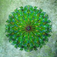 Koop dit bloemen kunstwerk Mandala - grunge in green van Rietje Bulthuis op canvas, aluminium dibond, (ingelijste) fotoprint, behang en ArtFrame, op maat geprint in Fine-Art kwaliteit.