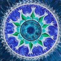 De mandala in blauw is intuïtief ontstaan. Het is een energiebeeld in indigotinten, dat kan worden toegewezen aan het voorhoofdchakra. Het behoeft geen interpretatie en werkt via zijn kleuren, vormen en symbolen.