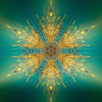 Een vurige gloeiende en energieke mandala met waterdruppels