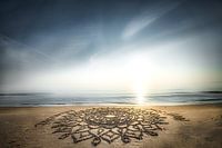Sfeervolle zonsopgang op het strand met prachtig strand mandalay op een bijna windstille en zowel rustige als ontspannen zomerdag.