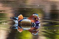 Mandarijneend in een vennetje midden in het bos op de Veluwe van Merijn Loch