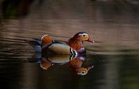 Koop dit vogel kunstwerk Mandarijneend in een vennetje midden in het bos op de Veluwe van Merijn Loch op canvas, aluminium dibond, (ingelijste) fotoprint, behang en ArtFrame, op maat geprint in Fine-Art kwaliteit.