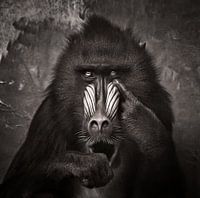 Zwartwit portret foto van een mandril (Afrikaanse baviaan)